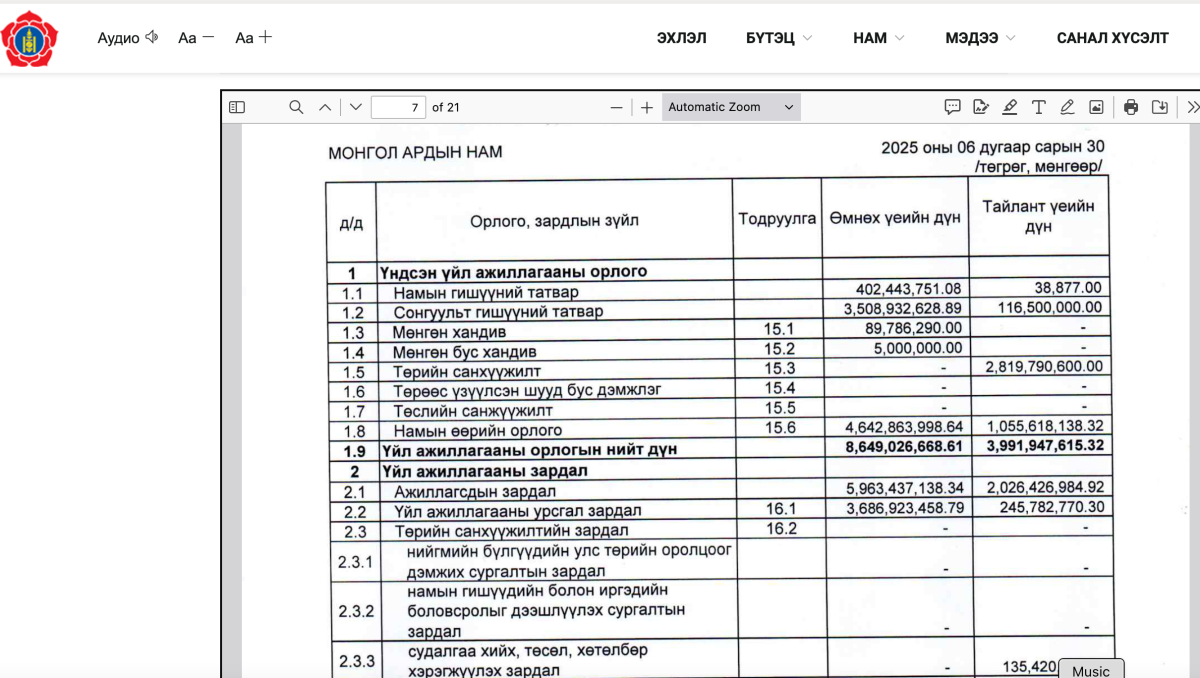 ХҮН намын 2025 оны эхний хагас жилийн санхүүгийн тайлан: