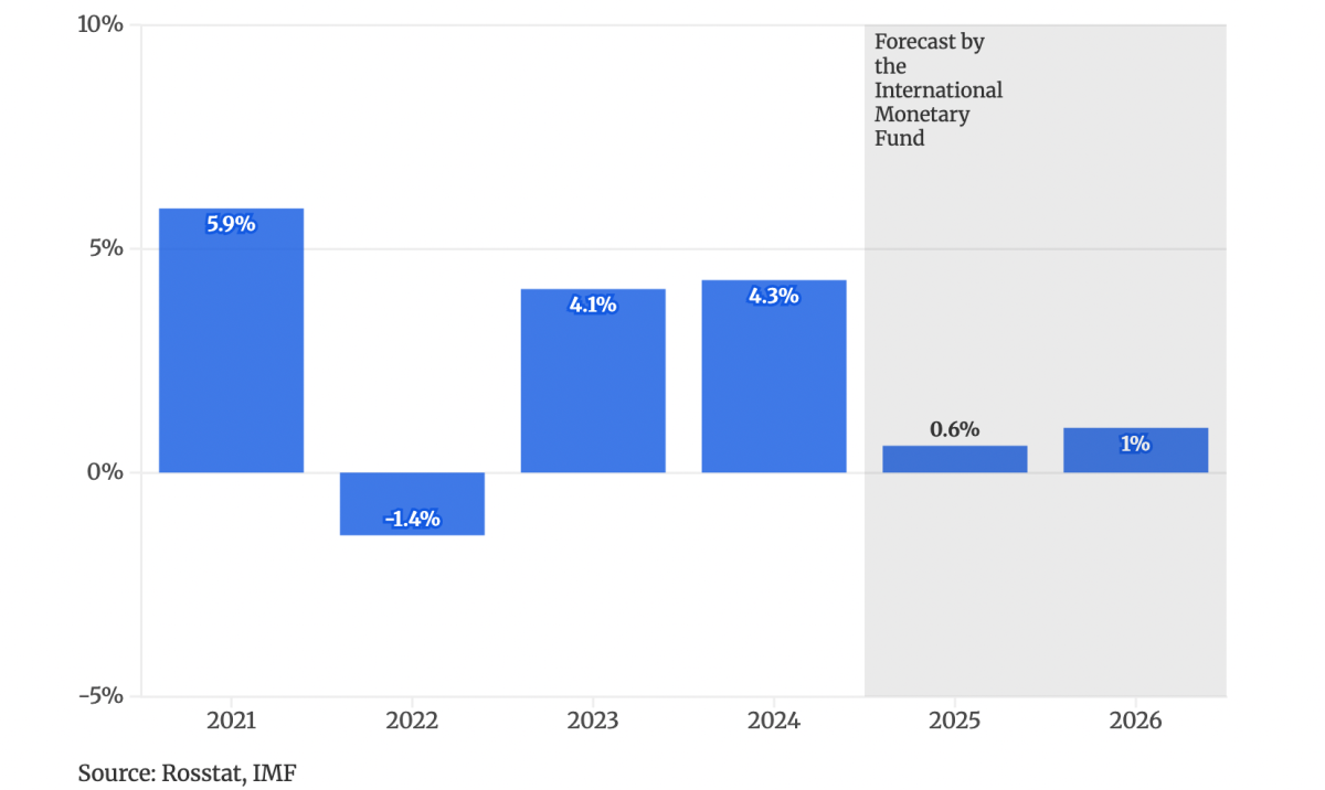 Өнгөрөгч жил нь 2022 онд эхлүүлсэн дайнтай холбоотойгоор өссөн ДНБ-ий өсөлтийн жилүүд дууссан гэдгийг тэмдэглэсэн жил болсныг дээрх графикаас харж болно. 2023 онд эдийн засгийн цочролоос гарсан эдийн засаг огцом өссөн нь дайны бүтээгдэхүүний үйлдвэрлэлтэй холбоотой.
