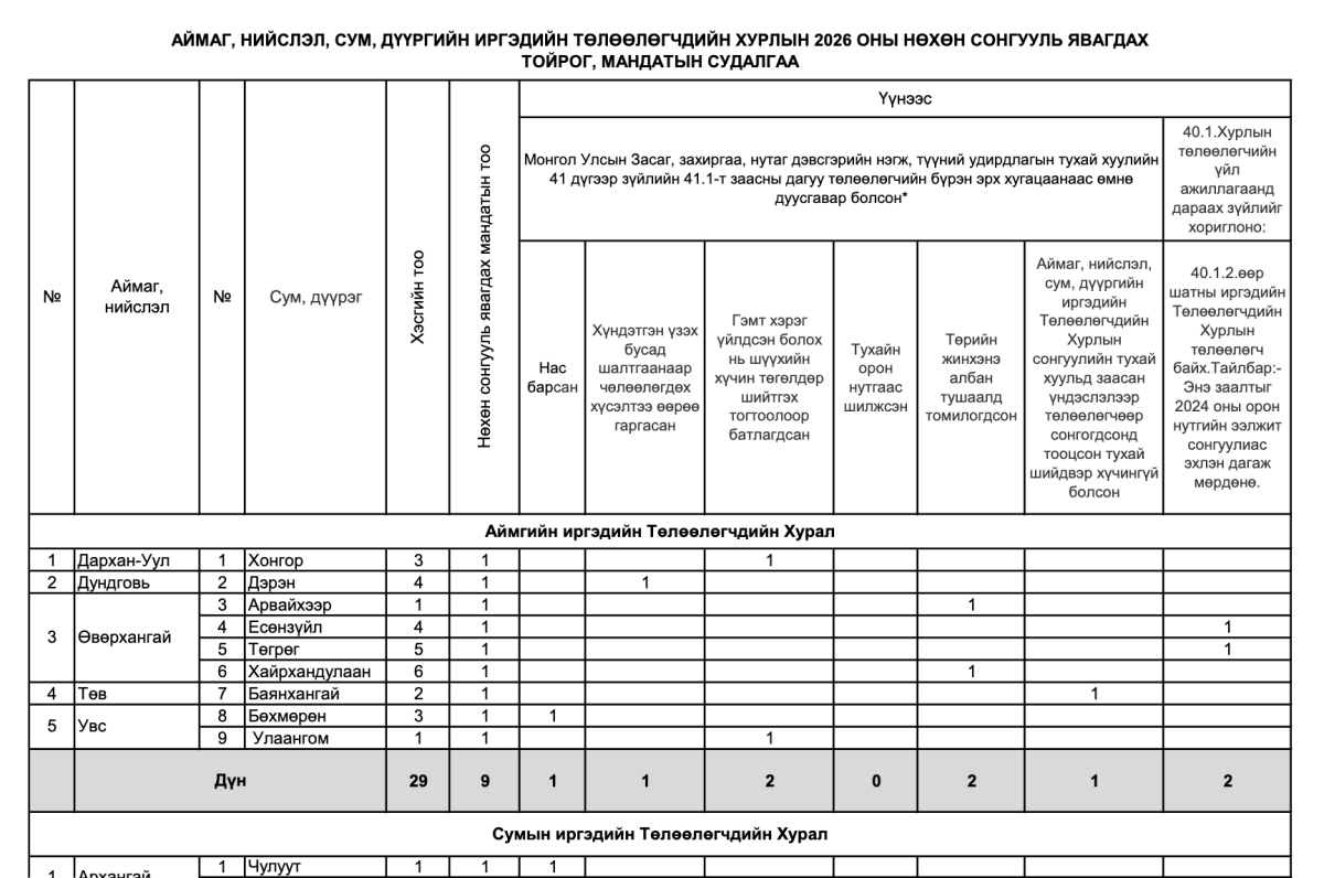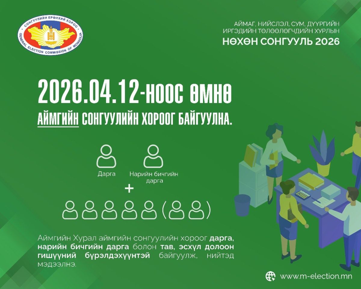 /2026.4.8/ Аймаг, нийслэл, сум, дүүргийн иргэдийн Төлөөлөгчдийн Хурлын 2026 оны нөхөн сонгууль зургаадугаар сарын 21-ний өдөр болно.
